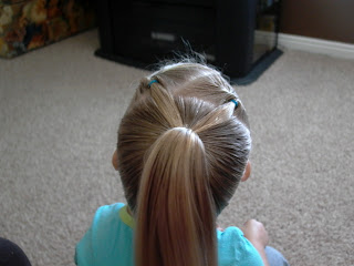 Whenever I do this style on my girls, I always try to have them sleep in it, ponys and all. The next day I take it all out and it will look (usually) like the soft tousled waves that are so popular today. I love love love it the next day. See the post labeled Double twist braid with soft tousled waves to see what I did the next day. Also, I don't finger comb out the curls until the next day, and then, just very lightly.